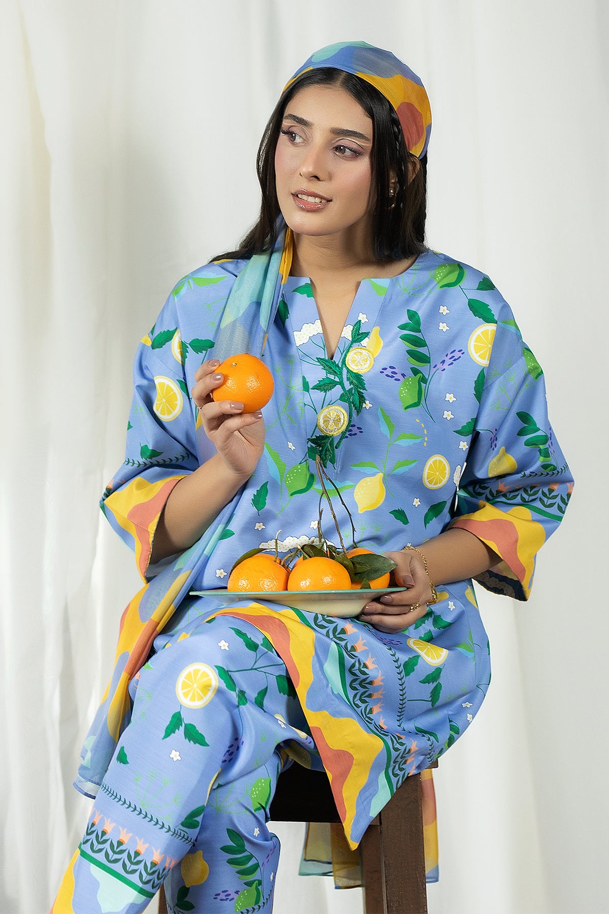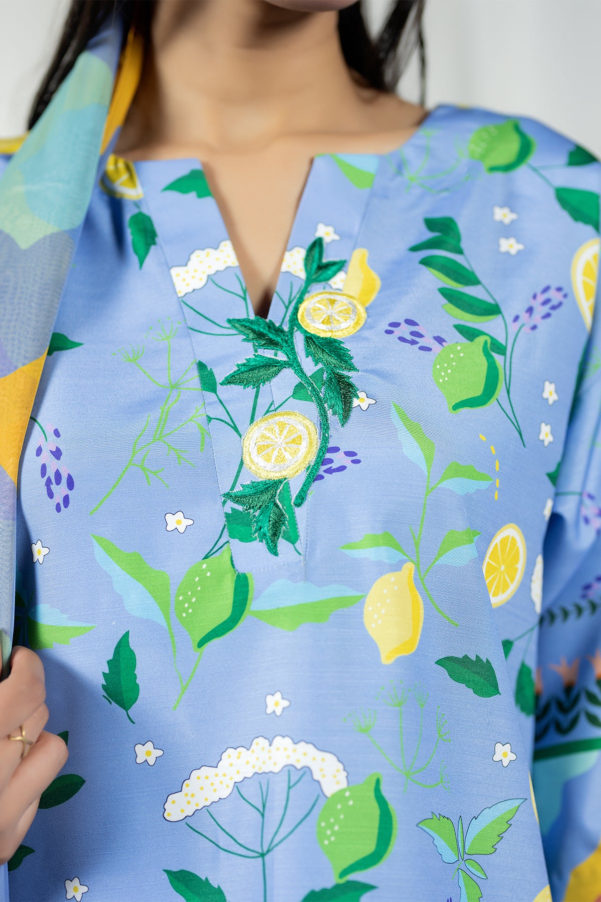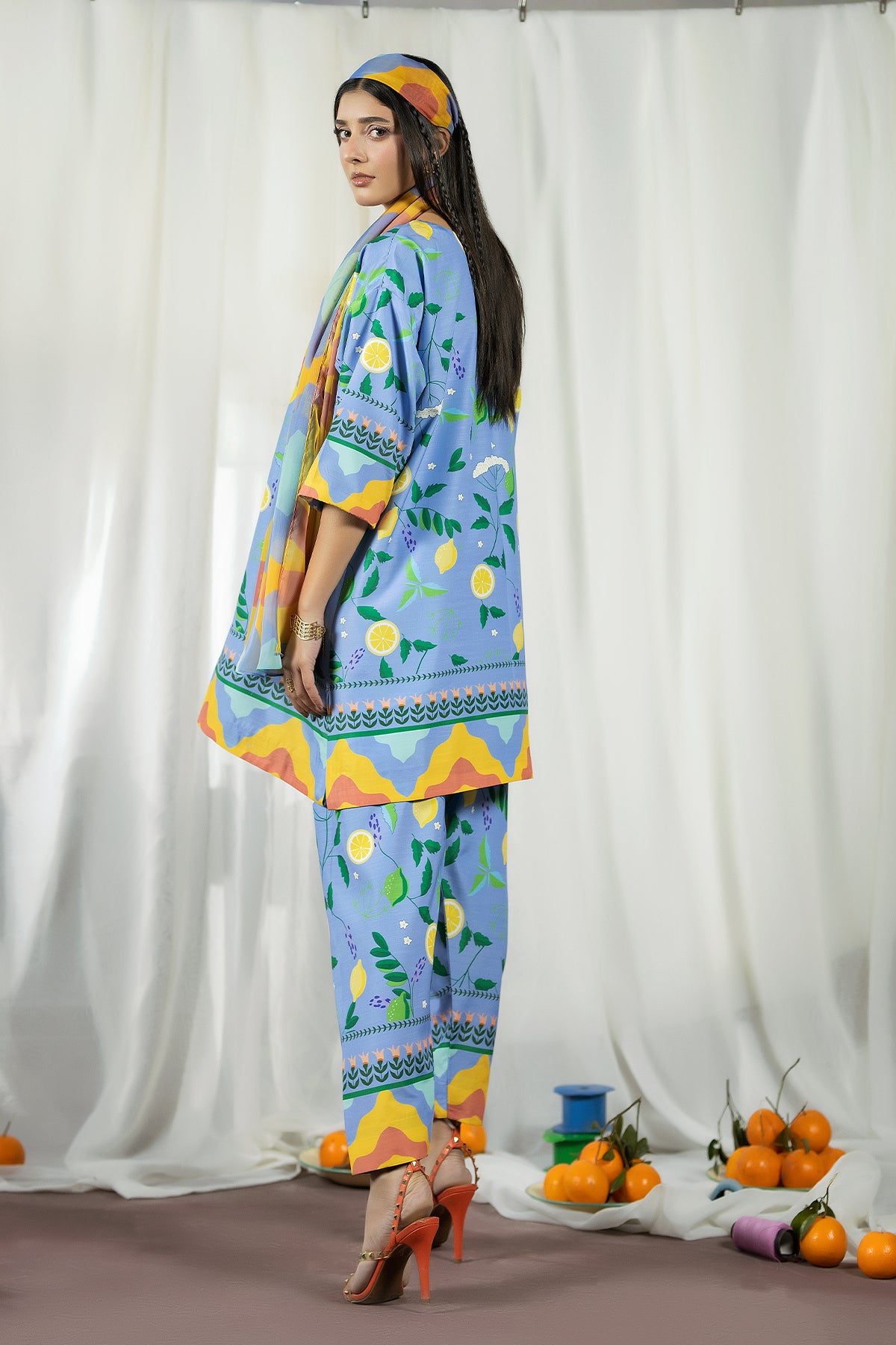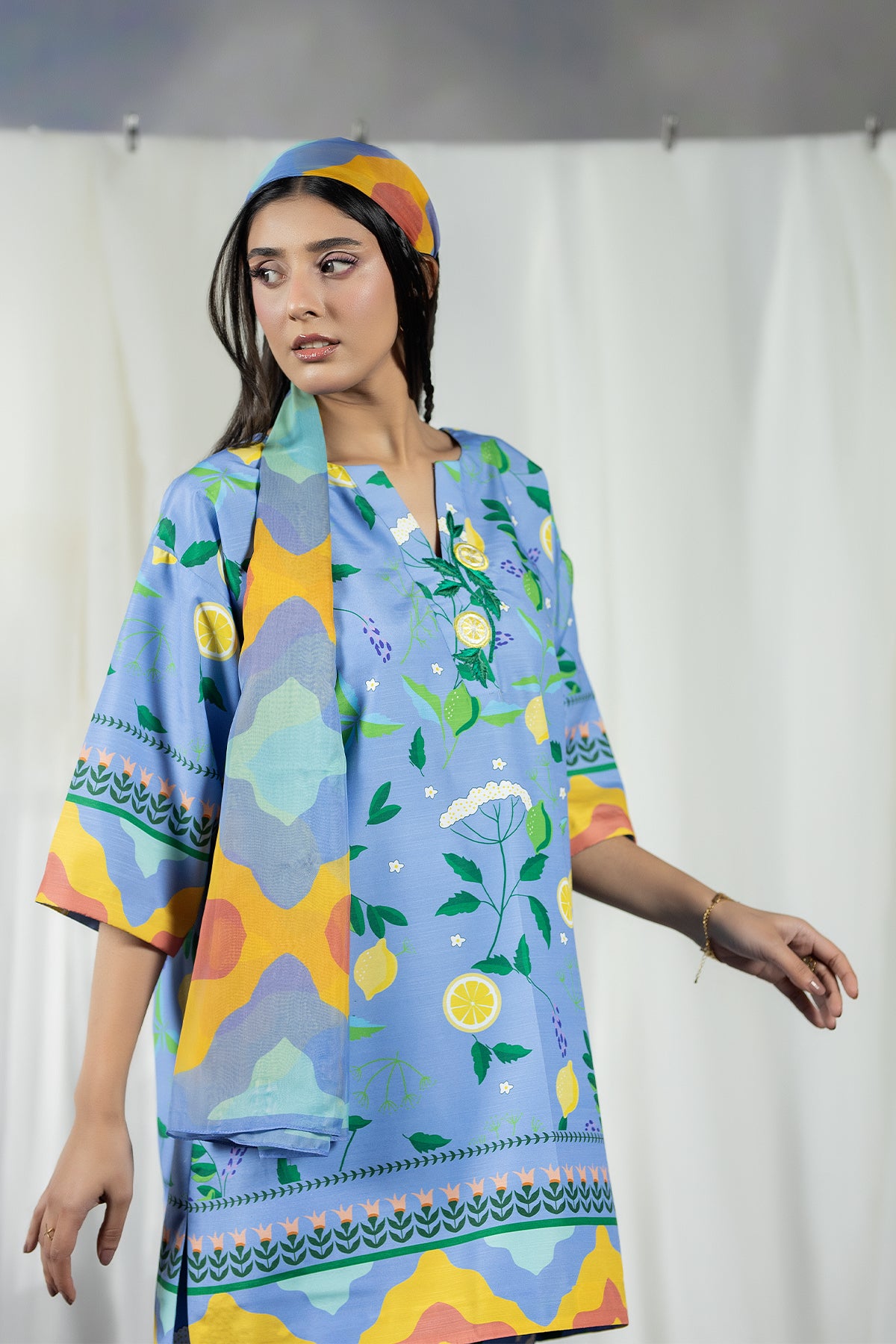 Designed for warm days and easy movement, this printed Raw Silk coord set pairs relaxed tailoring with a playful mix of color and print. The matching dupatta adds lightness, while the vibrant blue palette reflects the openness and energy of Basant